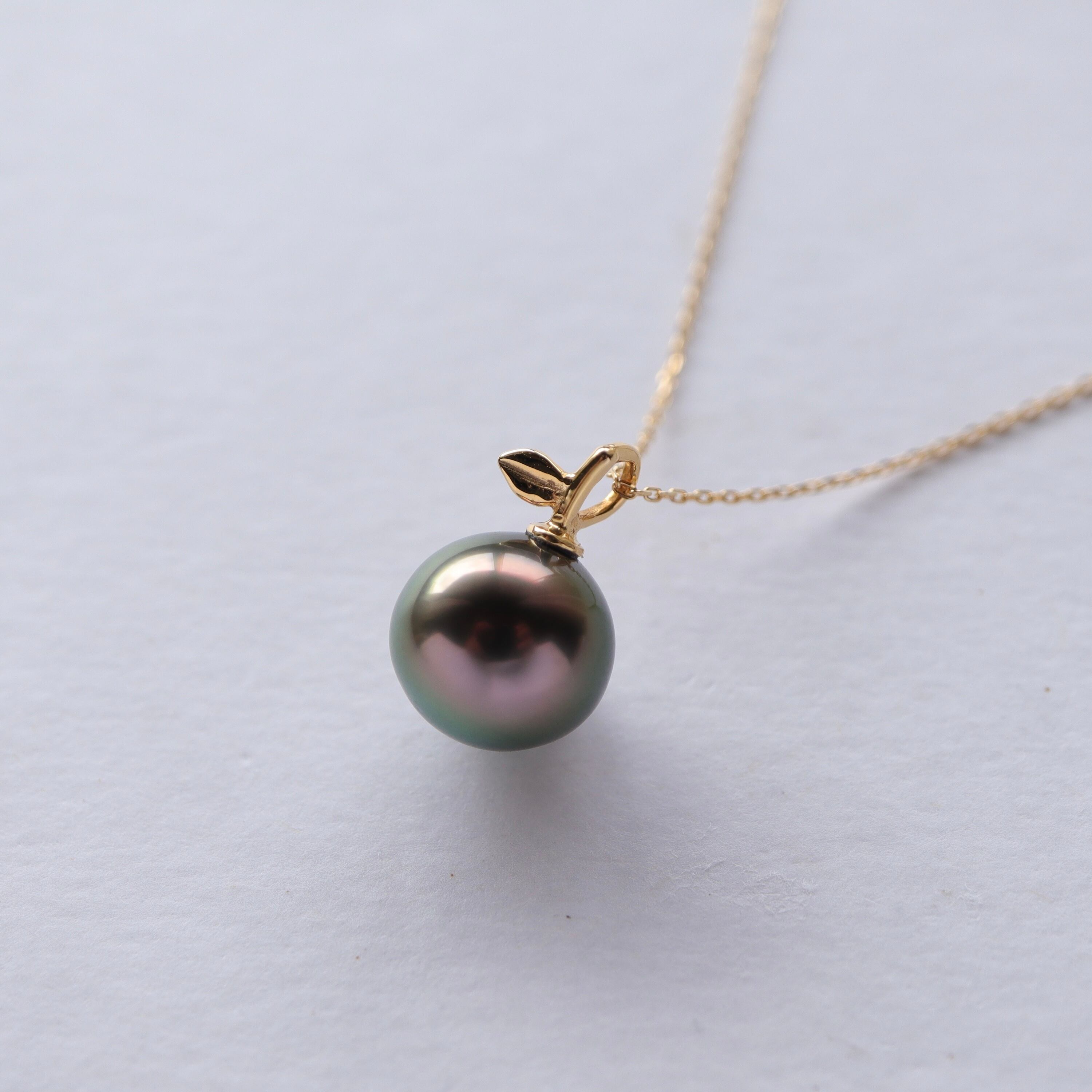 【オーダー品】タヒチパール(黒蝶真珠) × K10YG 果実モチーフ プチペンダント
