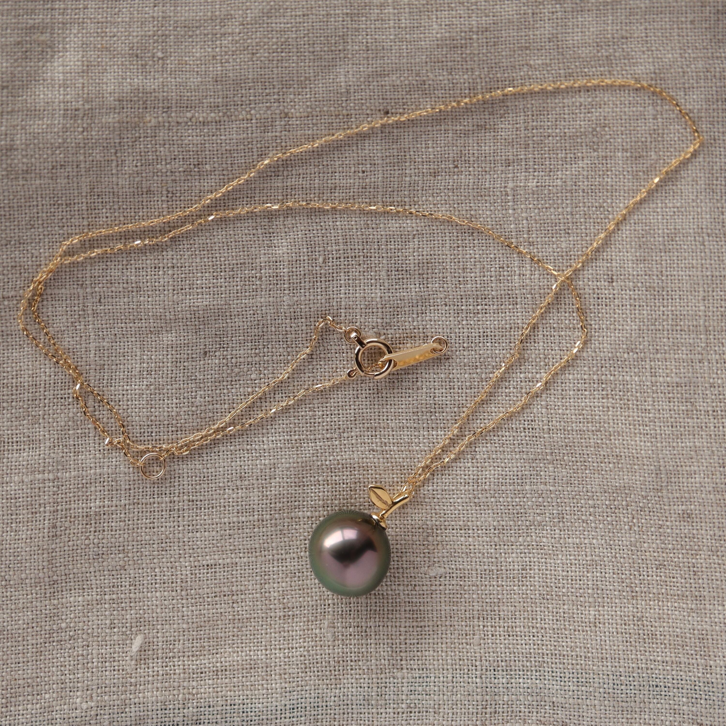 タヒチパール(黒蝶真珠)とK10のプチペンダントです。